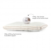 Generously filled with abundant spiral-like polyester fiber; 900g in filling, for that extra elasticity, making it firm yet soft, fluffy and breathable. Mesh fabric border effectively dissipates heat and moisture Intricately designed with an indent core that is precisely shaped to the contours of the head and neck, relieving unnecessary pressure on the spine for a superior night's rest. Best suited for those who prefer a firm and higher pillow; 13cm height.Odourless, Anti-dustmite.